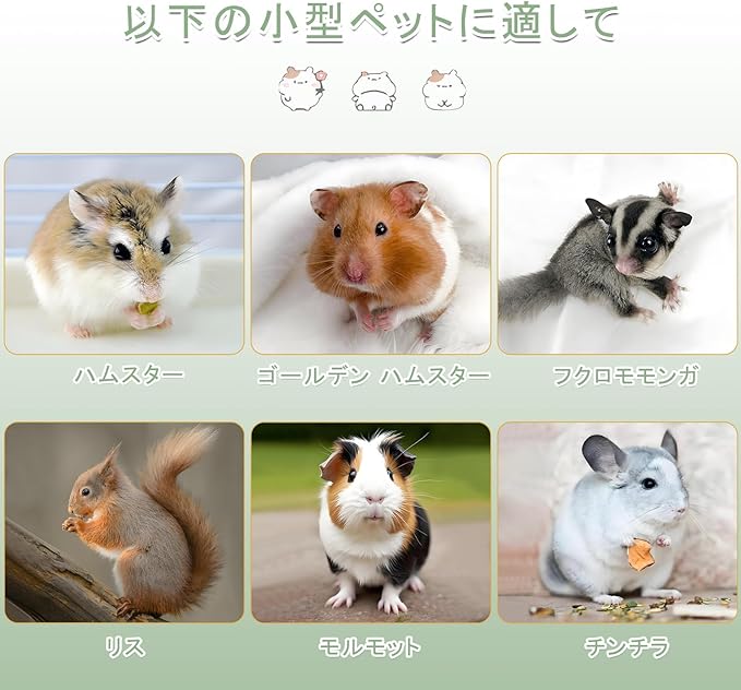 【小型ペットに最適】ハムスターだけでなく、ゴールデンのハムスター、モルモット、フクロモモンガ、リス、チンチラさまざまな小動物にも適しています。