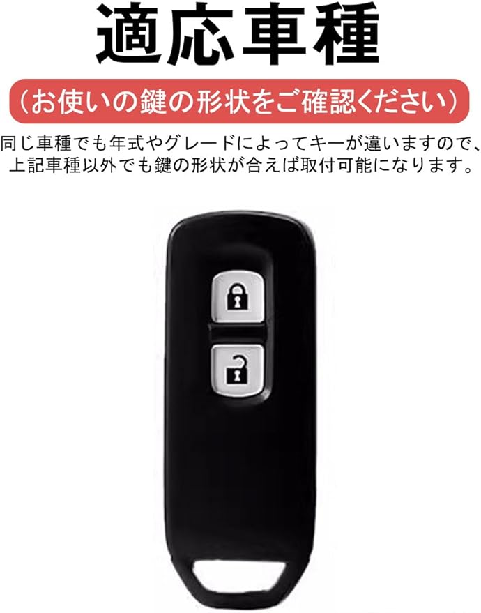 適用車種:このホンダキーケースはN-BOX N-ONE N-WGN N-VAN N-WGN等に適用(お使いの鍵の形状をご確認ください)※上記車種以外でも鍵の形状が合えば取り付け可能になります。購入する前に適合キーモデルの画像と一致しているかどうかをご確認してくださいませ。