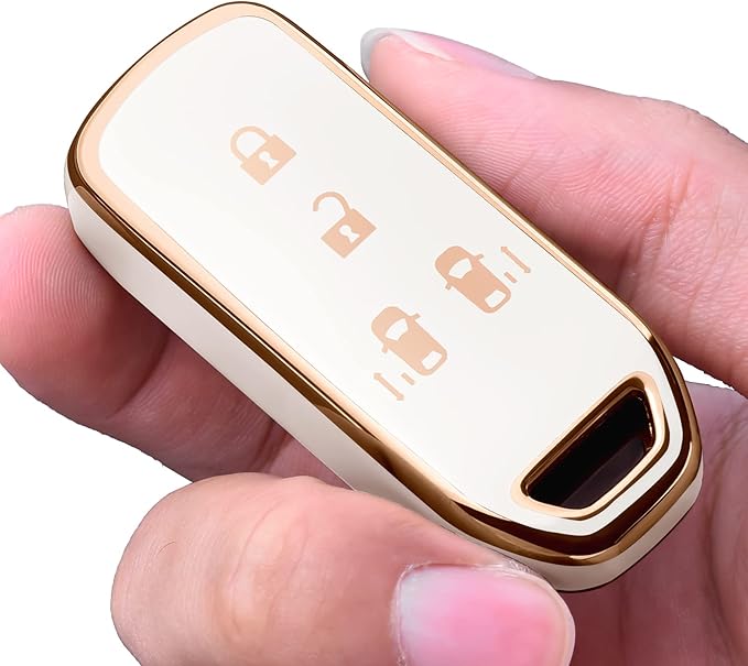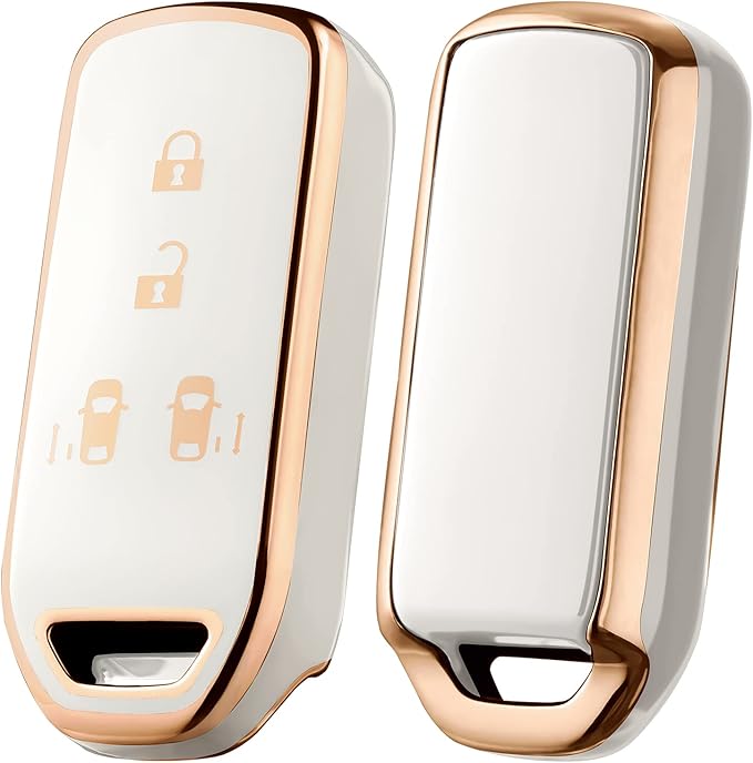 OATSBASF ホンダ N-BOXキーケース (4ボタン) ホンダ キーケース N-BOX/N-VAN/N-WGN/N-ONE キーカバー ホンダ アクセサリー tpu キーケース (金縁ホワイト)