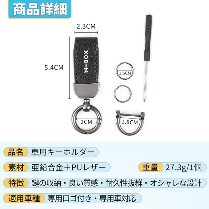 【オシャレな見た目 専用ロゴ付き】この車用キーチェーンは、亜鉛合金の金属的な質感で高級感を演出しています。シンプルでありながら、ファッション性も兼ね備えています。上部には高品質なPUレザーが使用されており、滑らかで心地よい手触りで、不快感を与えません。さらに、目を引く専用ロゴデザインで格調を一層引き立てます。適用車種:N-BOX JF1-6系 JOY ターボ スロープ カスタム などのグレード