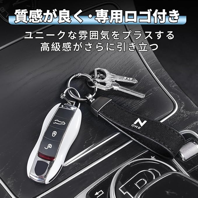 【優れた質感 専用ロゴ付き】この車用キーリングは、亜鉛合金の金属的な質感とスエード素材のマットな質感が融合し、高級感のあるビジュアルを生み出しています。キーリングの全体的なデザイン性を大幅に向上させ、ファッション性のある外観を実現します。さらに、専用ロゴによって、高級感が一層引き立ちます。適用車種:N-ONE JG1-4系 オリジナル プレミアム ツアラー RS などのグレード