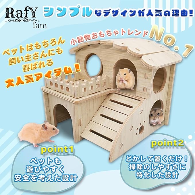 ハムスター 巣箱 2階建て ハウス ステップ 木製 モモンガ シマリス 小動物 遊び場 踏み台 おもちゃ 覗き見
