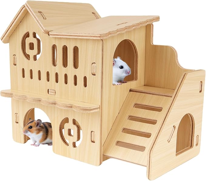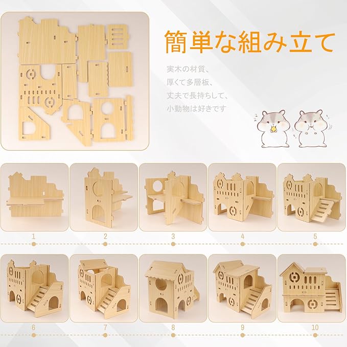IRRVIN ハムスター 家 ハムスター ハウス おもちゃ ハムスター おもちゃ 木製 小屋 厚い 丈夫 耐久性 取り付け簡単 かわいい ハムスター 遊び場 遊び道具 ストレス解消 運動不足解消 小動物用品