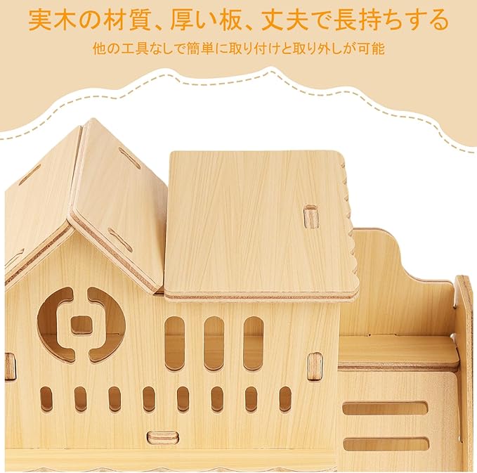 ハムスター 家 ハムスター ハウス おもちゃ ハムスター おもちゃ 木製 小屋 厚い 丈夫 耐久性 取り付け簡単 かわいい ハムスター 遊び場 遊び道具 ストレス解消 運動不足解消 小動物用品