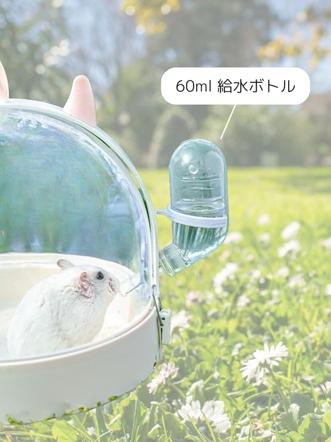 給水ボトルがついています。この小動物用ハムスターキャリーケースには60ml水ボトルが装備されており、給水器がついていますので、長時間の外出でも安心です。 ペットがいつでもどこでも自由に水を飲むことができます。ペットが移動中に気軽に飲むことができます。