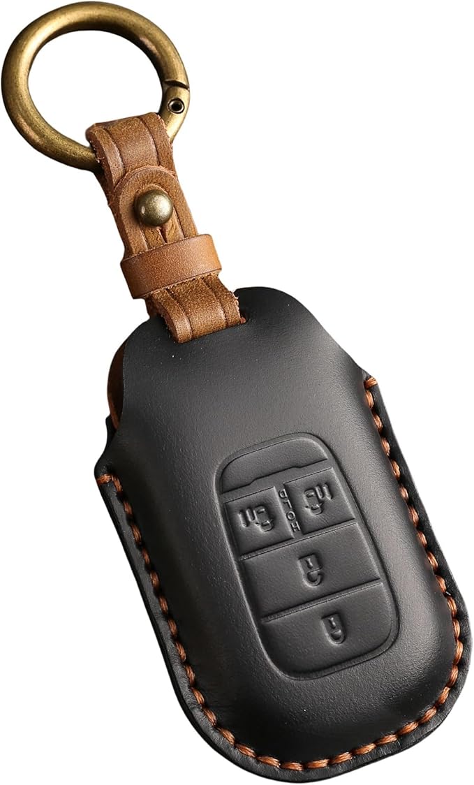 [YANMW] N-BOX カスタム JF5 JF6 キーケース 適合ホンダ 新型ステップワゴン キーカバー NBOX JF5 JF6 シビック ZR-V ヴェゼル 本革 キーホルダー (両側スライドドア 、ブラック)