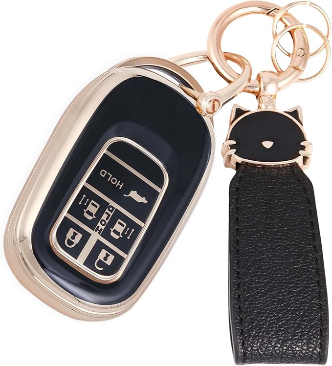 [ZANEKO] N-BOX カスタム JF5 JF6 キーケース適合ホンダ ヴェゼルシビックキーカバー新型 ステップワゴン 5ボタン(黒猫 、可愛い)