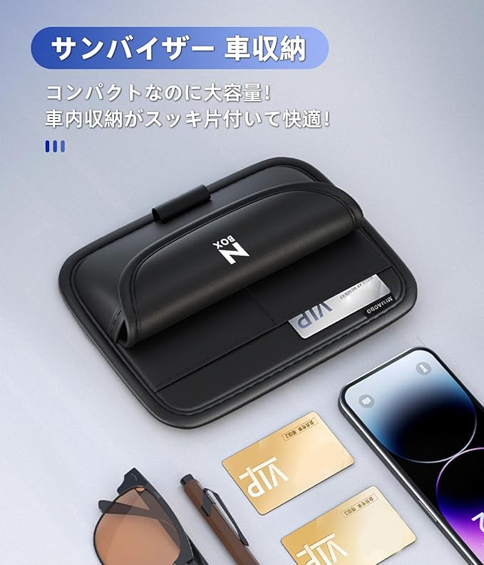 エヌボックス N-BOX 専用 車 サングラスホルダー メガネホルダー サングラス掛け サンバイザー 車用 収納 車載カードホルダー サングラスケース 小物入れ 多機能 車内収納用品 ツおしゃれ カスタム アクセサリー 内装パーツ レザー 1個入り(ブラック)