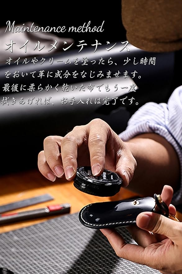 【上質な素材】厳選された高品質な革を採用することにより、革の質感や色合い、手触りは微妙に異なり、使い方や時間経過によっても風合いが変わっていきます。単線縫いの方法を採用し、より耐久性の高い縫糸を選び、キーケースの使用寿命を延長し、2線縫いと比べて、単線縫いはキーケースをより立体的に見せます。使えば使うほどに艶感が増しエイジングを楽しめる高級のレザーで、手縫いの温かみとともに長らくお使いいただくに値した本革キーケースと言えます。全ての本革キーケースは革質により、手作業でエッジ部分を磨く時間と力をちょうとよく把握し、製品の表面をもっと艶出し、美しくなるだけでなく、キーケースももっと頑丈で、靭やかになります。