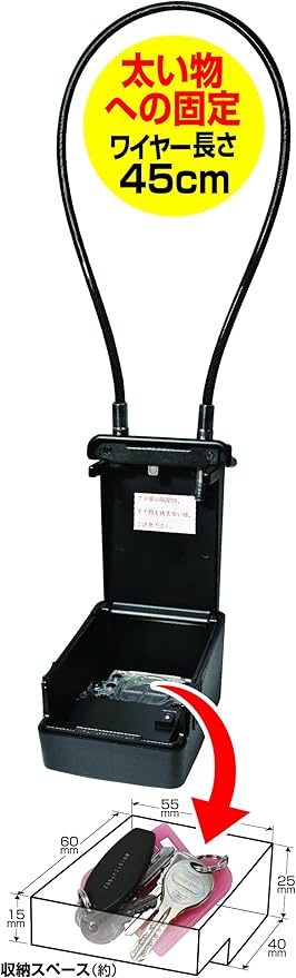 留守中でのカギの受け渡しや不動産物件等の管理に便利な鍵の収納ボックス。固定部に長さ約45cmのワイヤーを採用することで直径約14cmまでの太いパイプやいびつな形状の場所にも固定可能。小型ながら広い収納スペースがあり、大きく厚みのある鍵や小物の保管・受け渡しにも使えます。ボックス本体の施錠・開錠は可変式で自由に設定できるダイヤルキーを採用しており「キーストックのためのキー」は不要。ダイヤル部分を砂・ホコリから守る防塵カバー付きだから作業現場でも安心です。LEDライトが付いていて夜間や暗い場所で使用の際はダイヤル部を明るく照らせます(電池別売)。