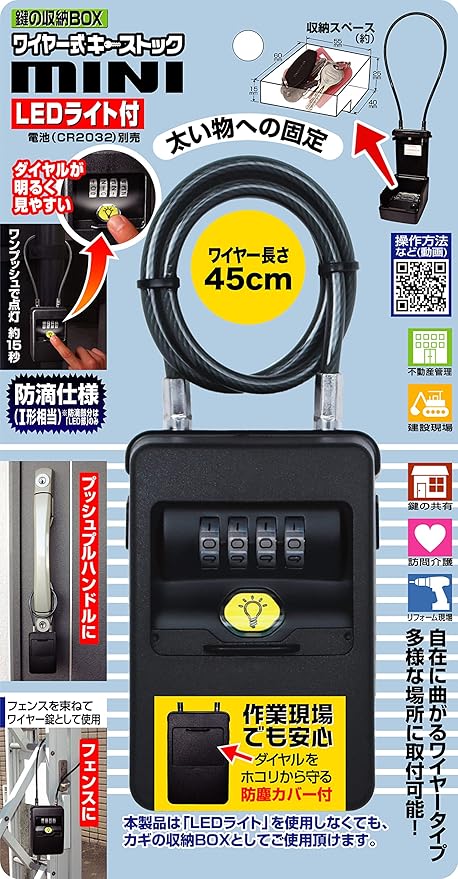 鍵の収納BOX ワイヤー式キーストック mini LEDライト付