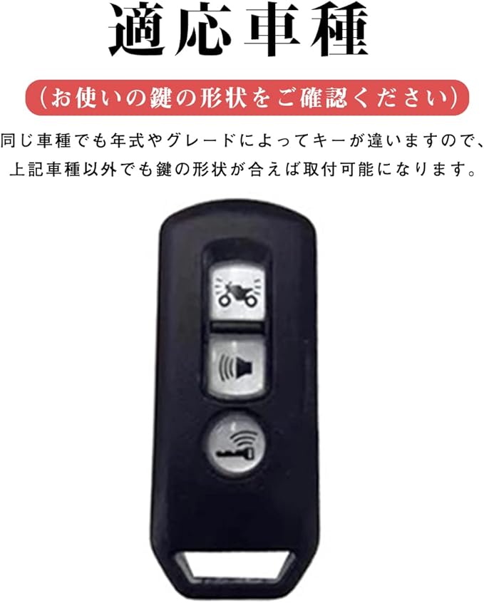 適合車種:HONDA PCX 125 150 SH125 SH300 等に適用。※ 同車種でも年式によりスマートキーの形状が異なる場合がございます。お使いのスマートキーの形状を必ず確認ください(写真参照)。