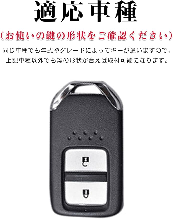 適応車種:Honda ヴェゼル / フィット / ジェイド / S660 / シャトル / CR-Z / シビックtypeR などのホンダ車に対応しております。(お使いの鍵の形状をご確認ください)※上記車種以外でも鍵の形状が合えば取り付け可能になります。購入する前に適合キーモデルの画像と一致しているかどうかをご確認してくださいませ。