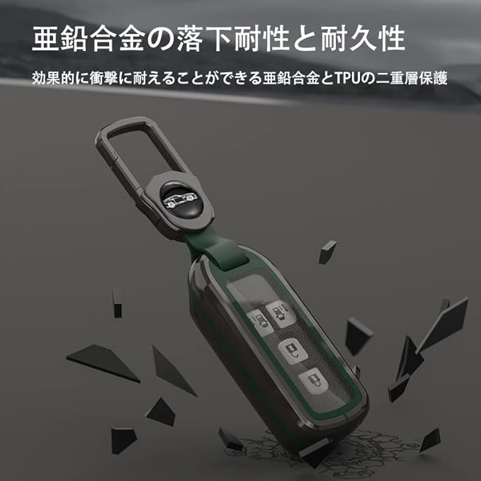 【高質材料】:車のキーケースの背面は亜鉛合金、キーケースのキー部分はTPU素材を採用。亜鉛合金の素材により、キーシェルの表面が良くなり、耐熱性と耐摩耗性に優れています