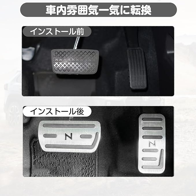【✨高級ヘアライン加工】アルミ素材で車内格上げ カスタム愛好者推奨 アルミペダルカバーの表面に施した「ヘアライン加工」は、光の反射でキラキラと輝き、高級車のような質感を演出!アルミ合金素材は軽量で堅牢,伸線加工による表面硬度アップで、爪や靴の擦れにも傷つきにくく耐久性に優れます。N-BOXカスタムやN-WGN内装ドレスアップに最適,車内の雰囲気を一気にステップアップ。