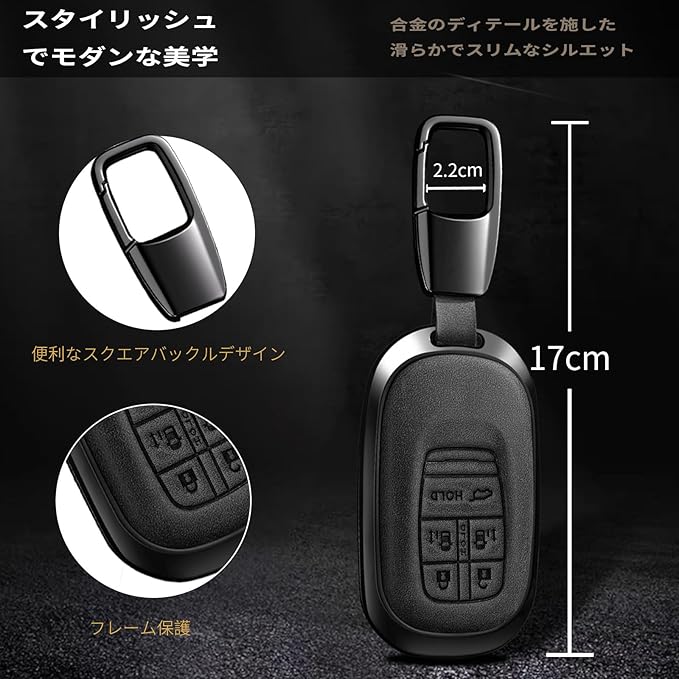 レザー素材:このキーカバーは高品質のレザーと亜鉛合金で作られています。表面は手触りが良く、頑丈なシルバーのフレームがスマートキーを傷や落下から効果的に保護します。