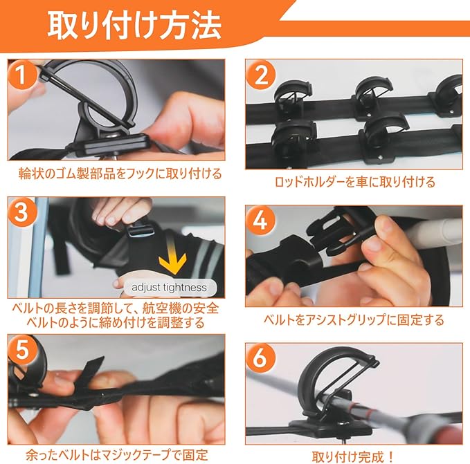 ロッドホルダー 車用 釣り竿収納 釣り道具 ロッドベルト 竿置き 車内 天井 ロッドキャリー ロッドキーパーベルト 設置簡単 説明書付き
