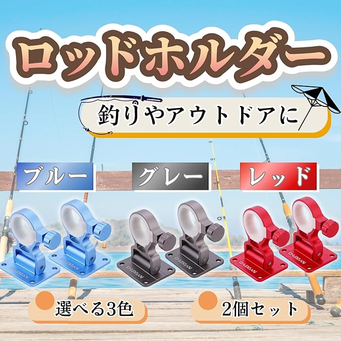 【セット内容】ブルー、グレー、レッドの3色から選べる2個セットで、複数の釣り竿を効率的に設置可能。