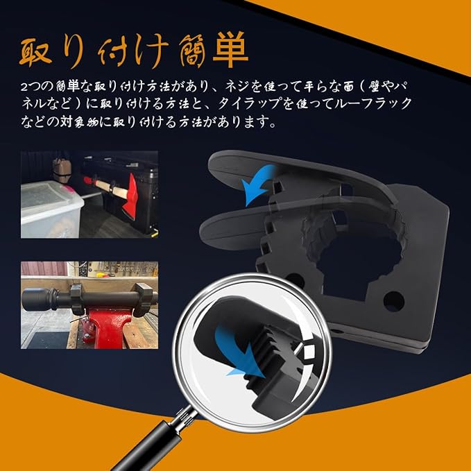 【適用対象】このスコップホルダーは29mm~35MMの直径の工具に適合します。スコップ、シャベル、スレッジハンマー、バール、ボルトカッター、パイプレンチ、牽引ロープ、懐中電灯、傘、その他の農業用工具などの固定や取り付けにも適しています。