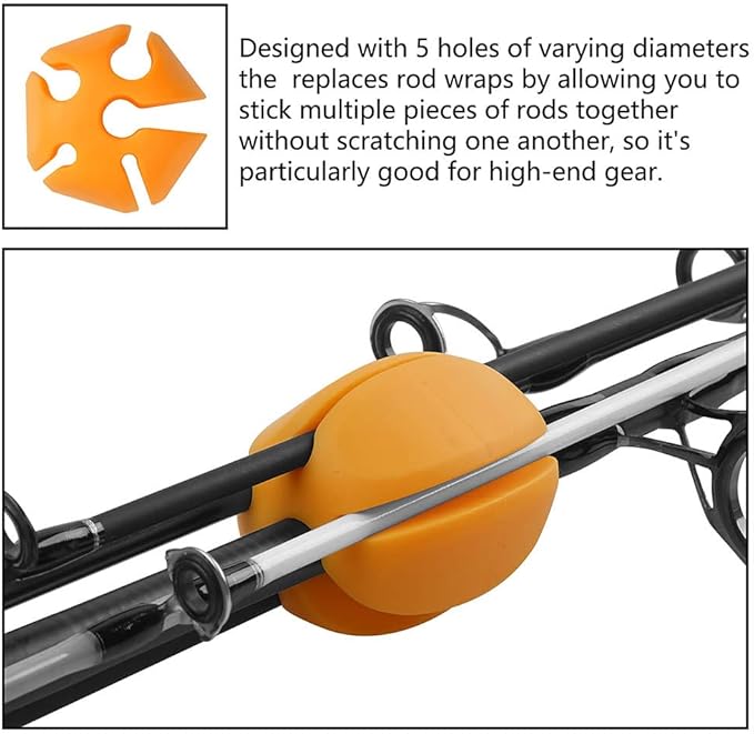 generic 6 個釣り竿ホルダーストラップ、5穴釣り具タイ、シリコン伸縮ロッドホルダー、釣り竿タイホルダー卵型バインダー、屋外釣り用 青