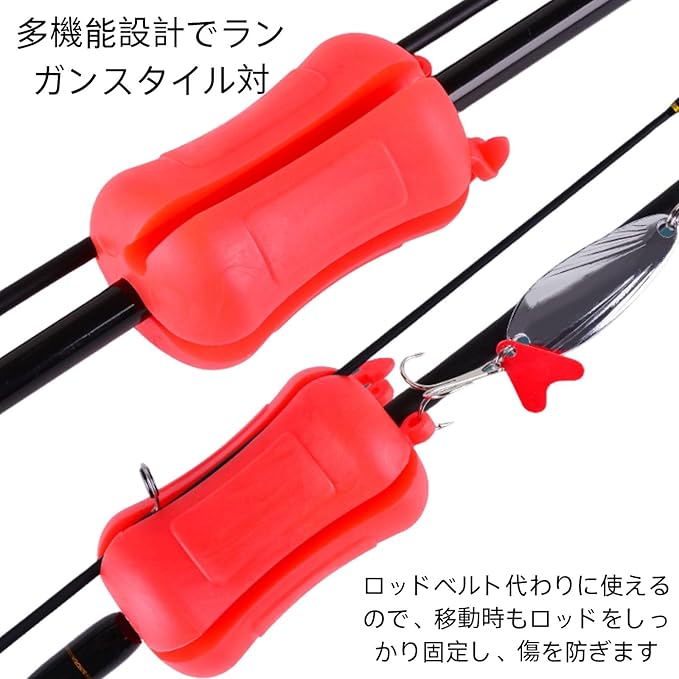 多機能設計でランガンスタイル対応:ロッドベルト代わりに使えるので、移動時もロッドをしっかり固定し、傷を防ぎます。フックキーパーがジグやルアーからロッドを守ります