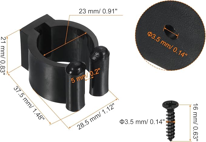 アパーチャ: 3.5 mm; 内径: 23 mm; ねじサイズ: 16 x 3.5 mm(L*直径); 全体のサイズ: 37.5 x 28.5 x 21 mm(L*W*H); パッキングリスト: 4 x ビリヤードスヌーカーキュー位置クリップホルダー 8 x ネジ付き