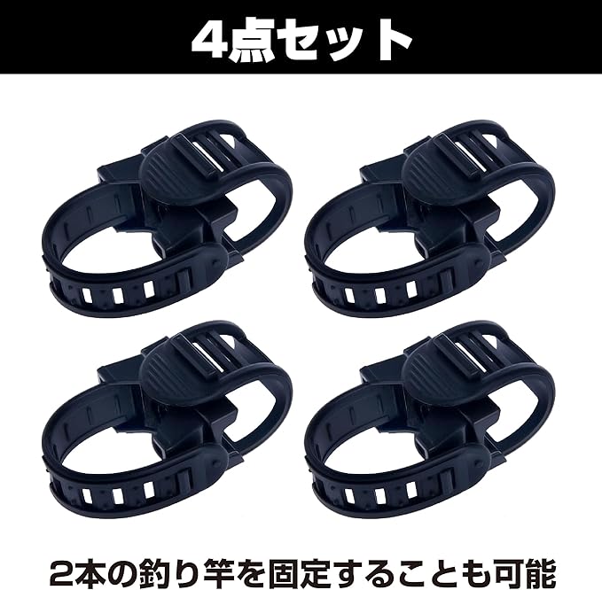 2本の釣り竿を固定することも可能:同じロッドクリップが4点揃ったセット品なので、2本の釣り竿を固定したい時にもお使いいただくことができます。置き竿でまったりと釣りを楽しんでいる方にもおすすめのセットです。