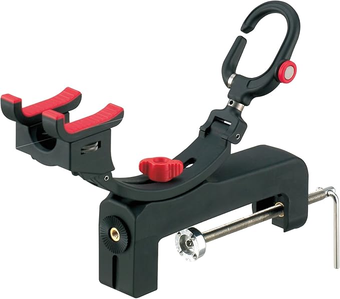 クランプはタテヨコ取付が可能で竿受の首振り・角度調節も自由自在です。