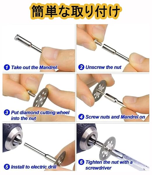 22mmのダイヤモンドカッターと3.00mmシャフトのセット(10個+2本)で、金属カッターやタイルカッターとして高精度な切断が可能。ロータリーカッター設計でスムーズな加工を実現。