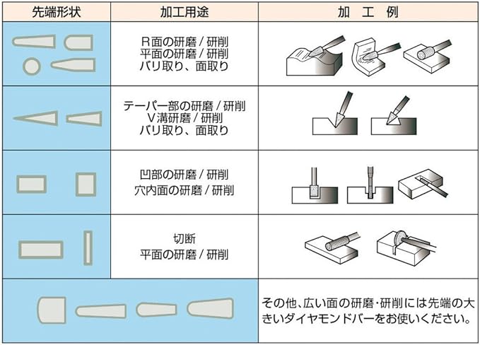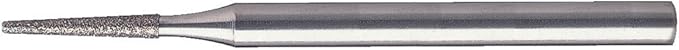 ●刃径 刃長 全長:1.6 7.0 44.5mm●粒度:#140●角度:6.7 ●軸径:3mm●適合被削材:超硬合金、ガラス、セラミック、ゴム、プラスチック、石材、コンクリート、フェライト、その他非鉄金属。●乾式での使用は可能ですが、研削液を使用すれば精度・仕上がりが良くなり、切れ味・寿命も向上します。●形の良い天然ダイヤモンドを厳選使用しています。独自の電着技術により、ダイヤモンド粒子は強固に固着されており超寿命を誇ります。●加工時間の大幅短縮を実現します。●豊かな仕上げ能力です。