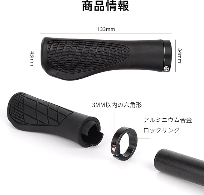 aninako 自転車 グリップ ハンドルグリップ クロスバイク エルゴグリップ 人間工学・滑り止め・ショック吸収 1セット 耐久性 汎用