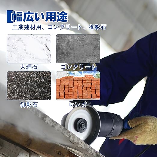 用途:硬質コンクリート、スレート、レンガ、硬質タイル、御影石、瓦、塩ビ、石材、不燃建材等の切断に。