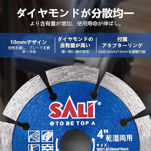 SALI ダイヤモンドカッター セグメント 高速 2枚セット コンクリートカッター 石材カッター 105mm ダイヤモンドブレード 乾式 湿式 薄刃 高速研削 タイル セラミック 花崗岩 切断ブレード