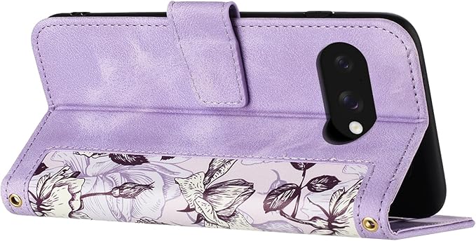 Google Pixel 9a ケース 手帳型 人気 スマホケース グーグル ピクセル 9a 財布型 カバー 可愛い 花柄 カードポケット付き 軽量 薄型 全面保護 贈り物 Pixel9a ショルダー 肩掛け 横置きスタンド機能 高級PUレザー 上質な手触り 擦り傷防止 ピクセル9a ブック型 ケース レディース 手作 落ち着いた色 (パープル)