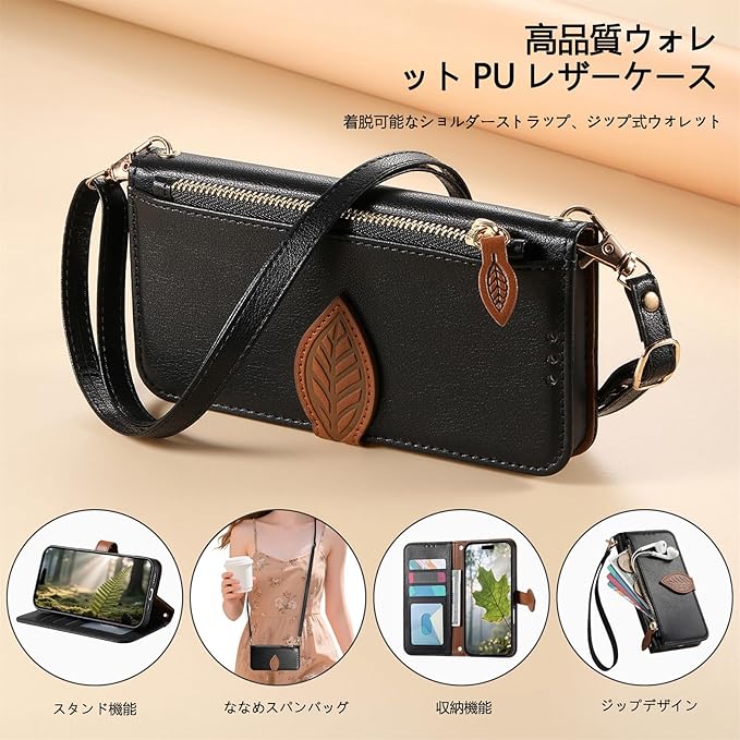 Vokpok対応 Google Pixel 9a ケース 手帳型 ショルダー 強力マルチカード収納 スタンド機能 耐摩擦 全面保護 グーグルピクセル 9A 財布型ケース 肩掛け 斜めがけ 手首かけ、掛けストラップ付き (長さ調整可能) おしゃれ 実用性 ジッパー小銭入れ Pixel 9A スマホケース PUレザー ある滑らかな手触り 贈り物 ピクセル9a ケース, ブラック