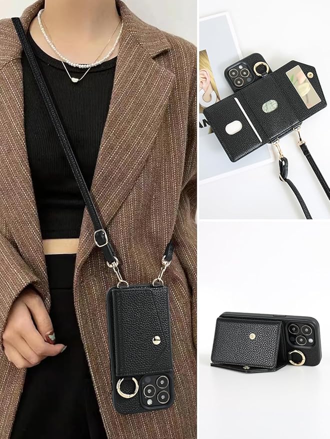Google Pixel 9a ケース 手帳型 ピクセル9a ケース 手帳型 グーグルピクセル9a 財布型 ショルダー 背面カード収納 化粧鏡 スマホケース Googleピクセル9A ピクセル9A携帯カバー GooglePixel9aケース スタンド機能 ストラップ 肩掛け 鏡付き ピクセル9a手帳型 ぐーくるぴくせる9a カバー 全面保護 耐衝撃 おしゃれ 防水 高級 レザー - ブラック