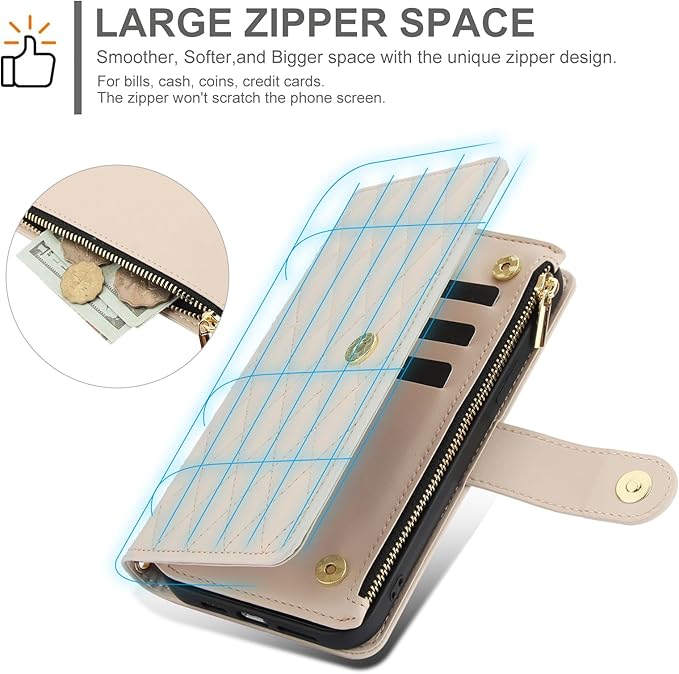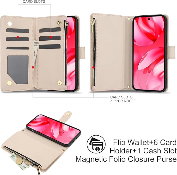 内部収納デザイン:ピクセル9a ケースには6つのクレジットカードスロットと、サイドに駐車券、名刺、銀行カード、小銭などを収納できる大きなポケットが付いています。カードスロットの一部はマグネットスナップクロージャーになっており、クレジットカードなどの不意の落下を防ぎます。 このスマホケースにはジップ式の小銭入れも付属しており、小銭入れのデザインにより、大きく開いて物を入れたり、取り出したりすることが簡単にできます。 スマホケースの収納機能は、外出時に余分な財布を持ち歩く必要がなく、効果的にあなたのニーズを満たすことができます! ショッピング、旅行、仕事、あらゆるシーンに最適です。