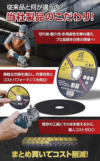【多機種対応で汎用性抜群】 この切断砥石は、さまざまなディスクグラインダーやミニアングルグラインダーに対応。すでにお手持ちの工具でも使用できるため、追加投資不要で便利です。