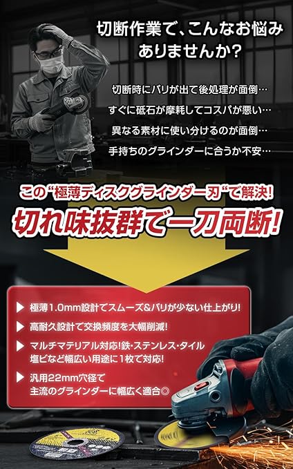 【極薄デザイン&高コスパの切断砥石・ディスクグラインダーセット!】