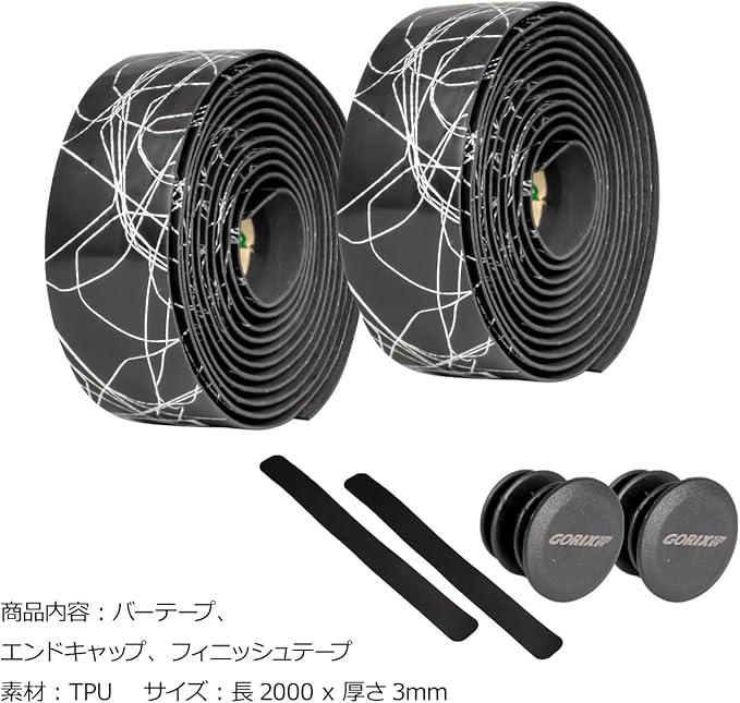 【商品内容】:バーテープ、エンドキャップ、フィニッシュテープ【素材】:TPU【サイズ】:長2000 x 厚さ3mm