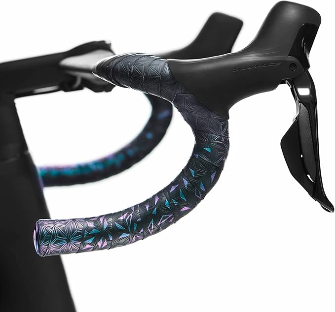 カラー:Oil Slick ・付属品:OilSlickカラーバーエンドキャップ、ハイエンドラバーテープ Super Sticky Kush Fade は、鮮やかな色と派手さを兼ね備えたバーテープです。幾何学的なSupacazパターンがエンボス加工されており、グリップと粘着性を最大化します。粘着性のある高度なポリウレタン使用により、グリップ性、 紫外線、気候、汗に強いのが特徴です。