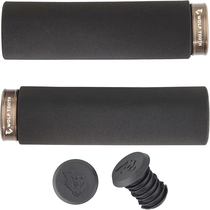 Fat Pawロックオングリップは、人気のFat Pawシリコンフォームグリップと同じ質感と感触をロックオングリップにもたらします。快適で取り付けが簡単で、優れた振動吸収性を備えています。Fat Pawロックオングリップの取り付け径は、Fat Pawシリコンフォームバイクグリップと同じ36mmです。標準的なマウンテンバイクのハンドルバーすべてに対応しています。 グリップはブラックのシリコンフォーム製で、ウルフトゥースの他のアルマイトアクセントパーツの8つの原色と調和するアルマイト加工のアルミカラーが付属しています。ウルフトゥース製のラバープラグが付属しています。マッチするアロイバープラグにアップグレードするか、ウルフトゥースEnCaseシステムでハンドルバーにツールを収納することもできます。