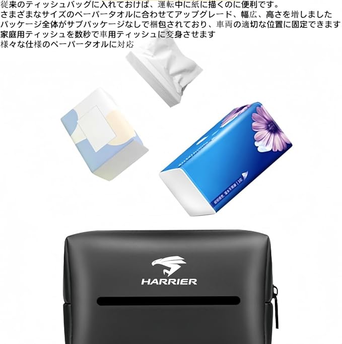 【デザイン】車用ティッシュボックスは、特別な車のロゴが付いた流線型のモダンなデザインを採用しており、車の装飾として使用できます。 機能性とデザイン性を兼ね備えた一枚。 繰り返し使用してもスタイリッシュな外観は色褪せることがなく、清潔に洗うことができます。 ティッシュバッグは密封されたシールで開閉し、安定していて落ちません。 高級感と使い心地が車にぴったりのティッシュボックスです。