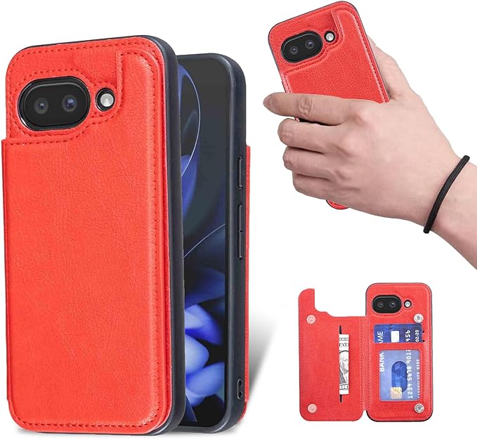 for Google Pixel 9A ケース スタンド機能 ICカード収納 カード収納 シンプルなレトロなファッション、防水と防汚、多機能財布収納(赤)