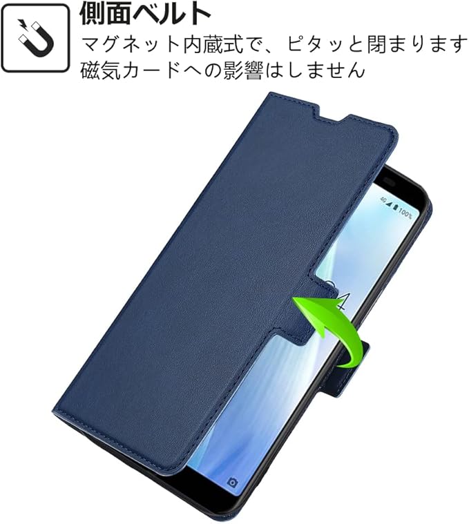 【特徴2】:スマホを横置きにしての視聴は不可欠なので、本ケースはスタンド機能が付きます。横向いて斜めに立てて両手を解放し、お気軽に読書やビデオの観賞を楽しむことができます。