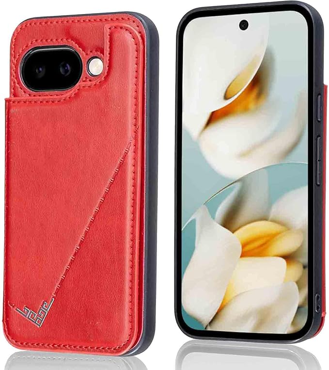 【Geshh】Pixel 9A docomo au Softbank レザーケース(レッド)耐衝撃 財布型カバー カード収納 横置きスタンド機能 開閉式 ストラップ付き 薄型レザーケース 対応 グーグル ピクセル9a pixel9a ソフトバンクpixel9a RED