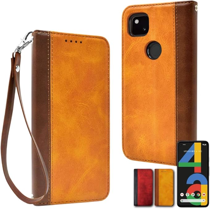 シズカウィル Google Pixel 4a ケース カバー 手帳型 本革調 レザーケース イエローブラウン ブラウン 1個入り