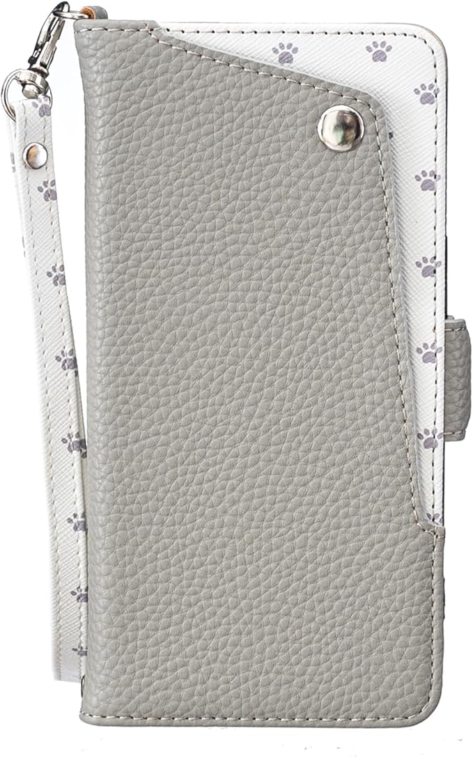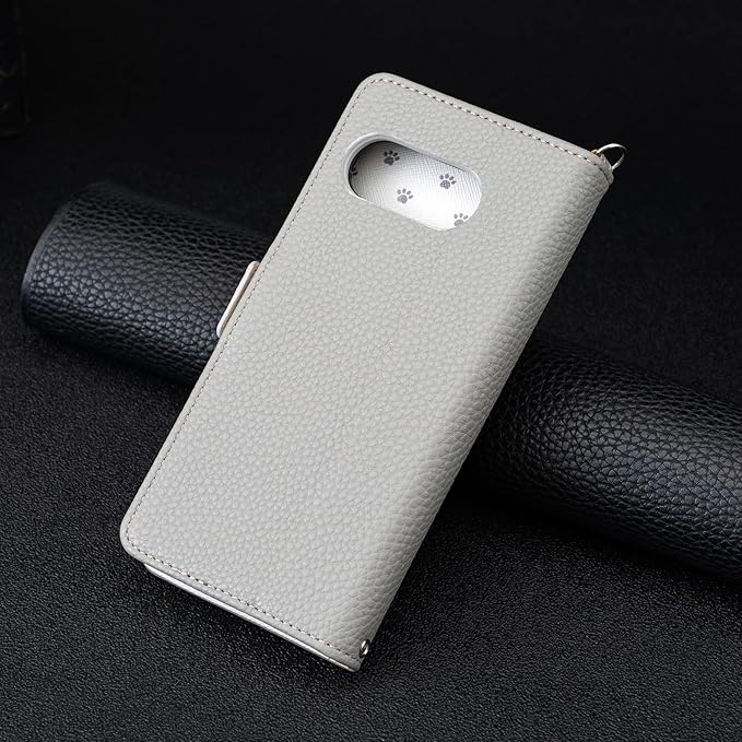 電話カバー 対応 Google pixel 9A グーグル ピクセル9aケース手帳型 かわいい猫の足跡 ストラップ付き カード収納 スタンド機能付き マグネット開閉式 財布型 小銭収納 全面保護 耐衝撃 (B2-グレー, Google pixel 9A)