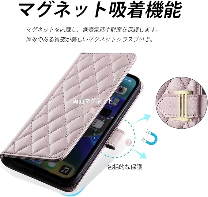 マグネット内蔵マグネットを内蔵しています。 その目的は、開閉を補助することです。 携帯電話や持ち物の安全を守る多重保護構造。
