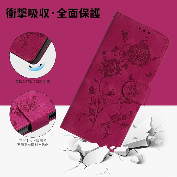 1.優れた素材:スマホケースの外側は高品質なPUレザーを使用しており、手触りがよく、耐摩耗性に優れ、指紋がつきにくくなっています。2.フリップカバーデザイン:ケース前面のマグネットがケースを固定し、不意に開くのを防ぎます。3. スタンド機能: スマホケースはスタンド機能を兼ね備えており、お好みの角度に簡単に調節することができます。 4.花柄デザイン:この携帯電話ケースは、表面にバラと蝶のパターンが付属しており、シンプルでカジュアル、誰にでも適しています。